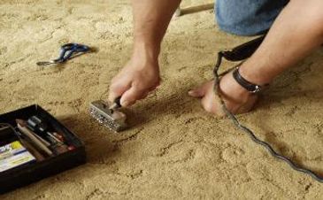 Seam repair is needed when an existing seam has come undone. Often, the carpet is pulled up, exposing the back side. The existing seam tape that bonds the carpet together is removed, and the carpet is re-trimmed. Then, with a perfect straight edge, the carpet can be seamed again by a very qualified and experienced repair technician and re-stretched to make your carpet beautiful once again. Carpet Repair and Cleaning, Carpet Stretching and Patching, Rug Binding and Fringe.